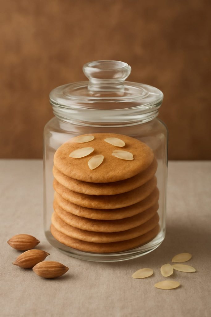 Simpan dalam Suhu Ruangan: Jangan menyimpan Almond Crispy dalam kulkas karena suhu dingin dapat membuatnya kehilangan kerenyahannya. Cukup simpan di suhu ruangan untuk memastikan camilan ini tetap enak.