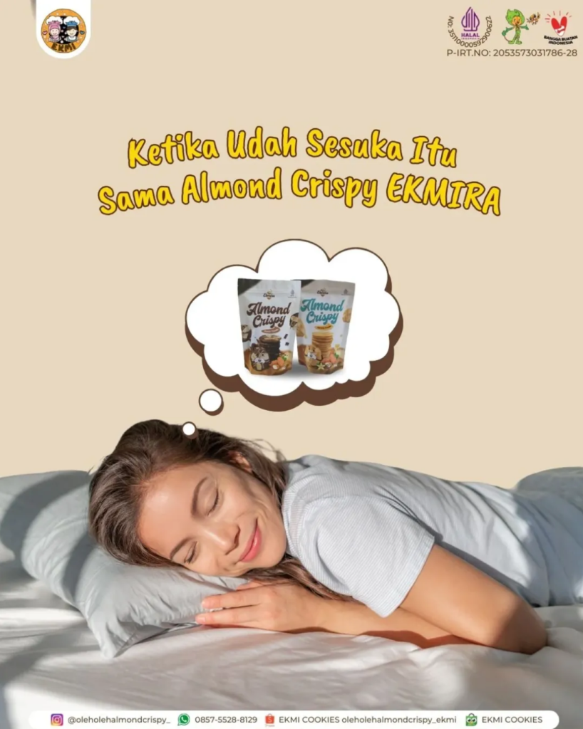 Banyak pelanggan bilang, Almond Crispy Ekmira bikin nagih! Cocok untuk oleh-oleh, camilan keluarga, hingga hampers cantik. Rasanya enak, kemasannya elegan. Kamu punya cerita juga? Share ke kami di media sosial ya!...