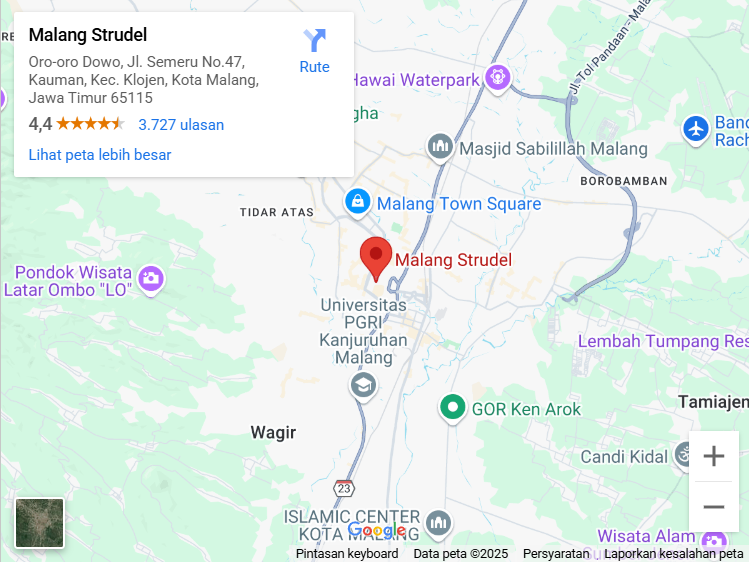 Jalan Semeru Nomor 25, Ruko Semeru, Klojen, Kauman, Kec. Klojen, Kota Malang, Jawa Timur 65111